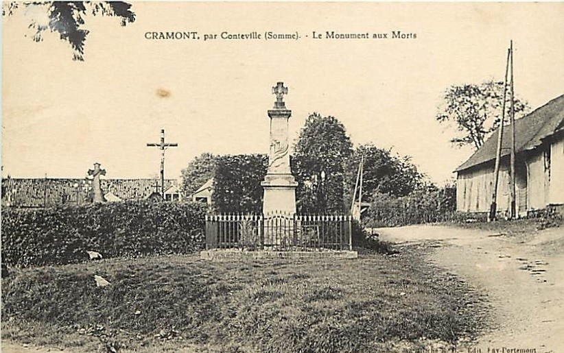 Cramont est un petit village du Ponthieu situé entre Saint Riquier et Bernaville. Il fait partie du canton de Ailly-le-Haut-Clocher. Un peu plus de 400 habitants sont répartis dans le village et ses quatre hameaux environnants : » le Ménage « , » les Masures « , « les 4 saisons » et » Moulin blanc « . Il est bordé au sud-ouest par la chaussée Brunehaut, ancienne voie romaine allant d’Amiens à Montreuil-sur- Mer.