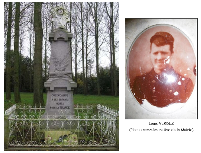 « Merci à Jean-Paul Mittay pour la photo de Louis Verdez, issue d’une plaque commémorative des enfants de Colincamps Morts pour la Patrie »