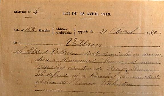 Sur l’Etat-civil régimentaire de Sainte-Marie Remi dit Raymond VILLAIN, une mention rectificative a été ajoutée :