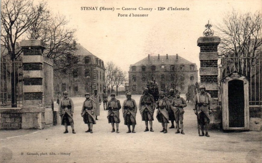 Le 1er aout 1914, la mobilisation est décrétée en France, et l’Allemagne lance les hostilités contre la France le 3. Raymond a 34 ans, il passe pour un ancien pour tous ces jeunes samariens qui ont commencé leur service militaire en 1911, et celui-ci à peine fini, ils sont réintégrés aussitôt dans leur régiment. Il arrive le 12 août au 120ème R.I. qui est stationné à Stenay depuis plusieurs mois au vu des événements. C’est le lieutenant-colonel MANGIN qui commande ce régiment jusqu’au 1 septembre 1914, il sera alors remplacé par le lieutenant-colonel Nicolas GIRARD.
