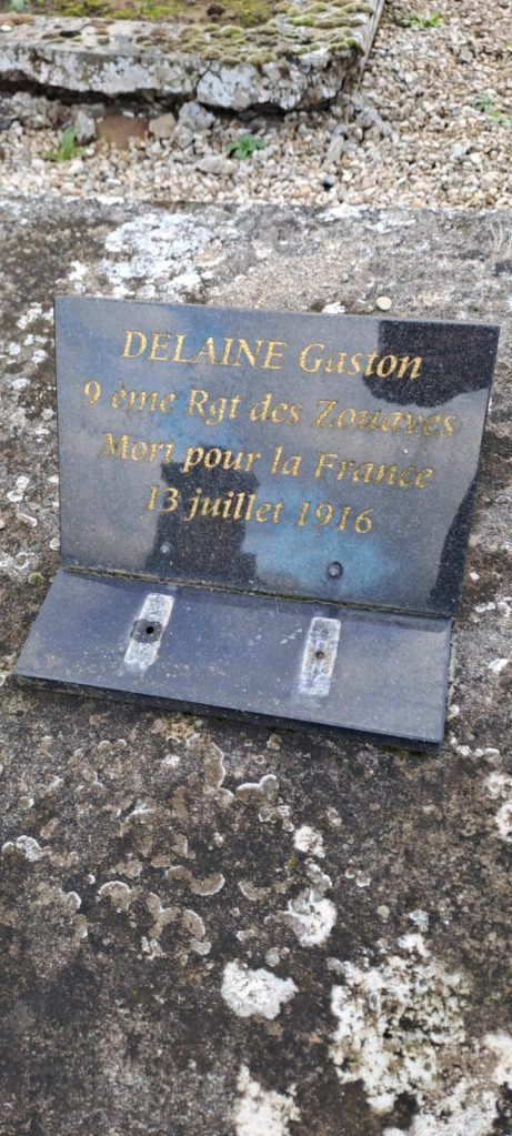 Comme lui, Gaston DELAINE, né à Eterpigny (Somme) le 7 octobre, sergent au 1er Régiment de Zouaves, est mort le 13 juillet 1916 à Maricourt (Somme) à une vingtaine de kilomètres de chez lui, il est enterré à Brie.