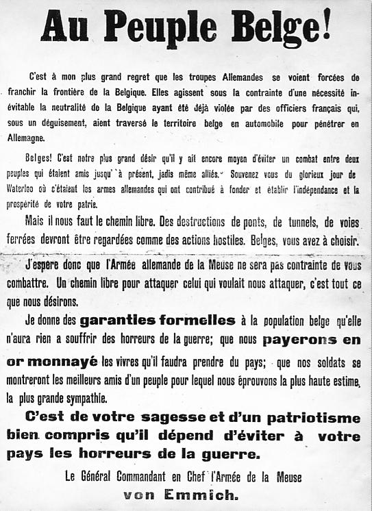 « Sans la moindre provocation de notre part, un ennemi orgueilleux de sa force a déchiré les traités qui portent sa signature. Il a violé le territoire de nos pères (…). César a dit de vos ancêtres « De tous les peuples de la Gaule, les Belges sont les plus braves ». Souvenez-vous devant l’ennmi que vous combattezLire la suite 4 août 1914 : le « bouchon » de Liège