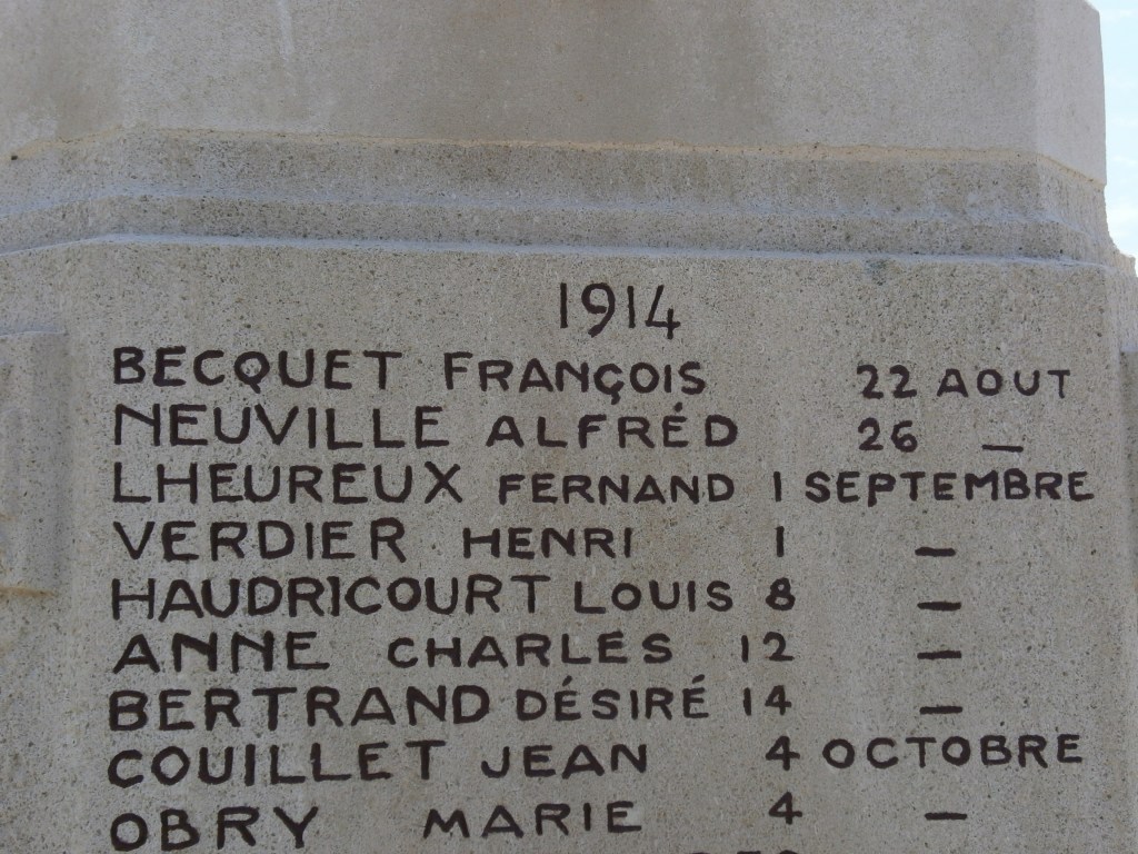 Beaucoup d’autres jeunes hommes originaires de la Somme ont été tués dans les communes voisines (Houdrigny, Meix-devant-Virton, Villers-la-Loue, Virton…) ou dans la région de Namur.