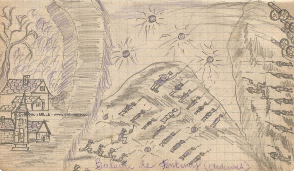 5h : après avoir parcouru les 3 kilomètres qui séparent Autruche de Fontenois, les soldats français s’installent au nord du village, en direction de Saint-Pierremont où de nombreuses troupes d’infanterie allemande sont signalées.