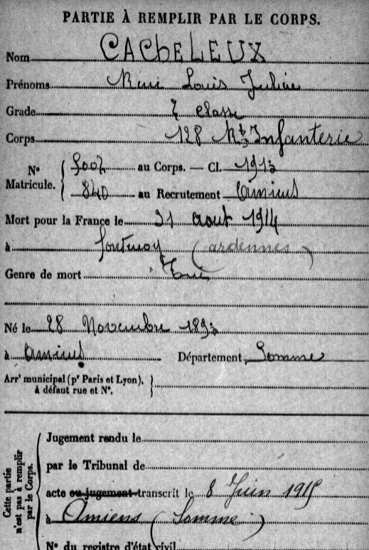 René Louis Julien CACHELEUX est né le 28 novembre 1893 à Amiens.