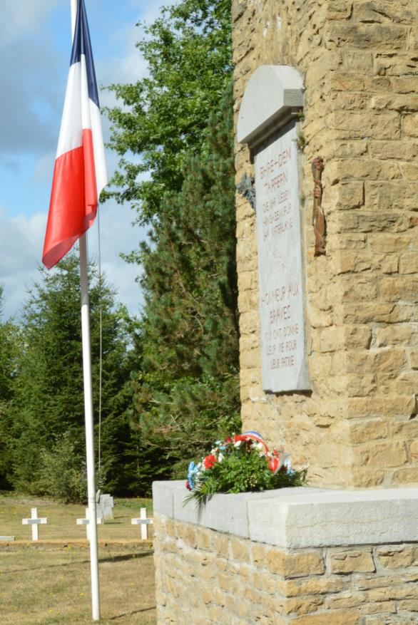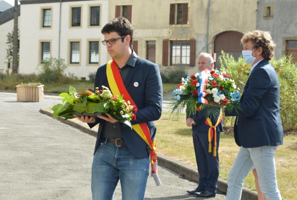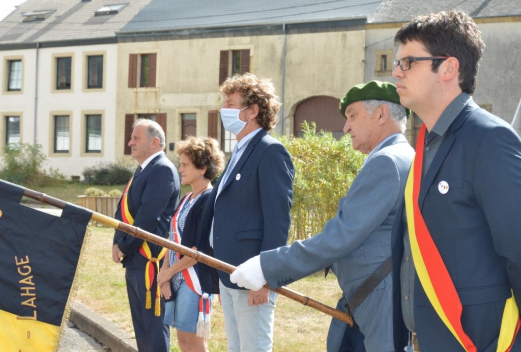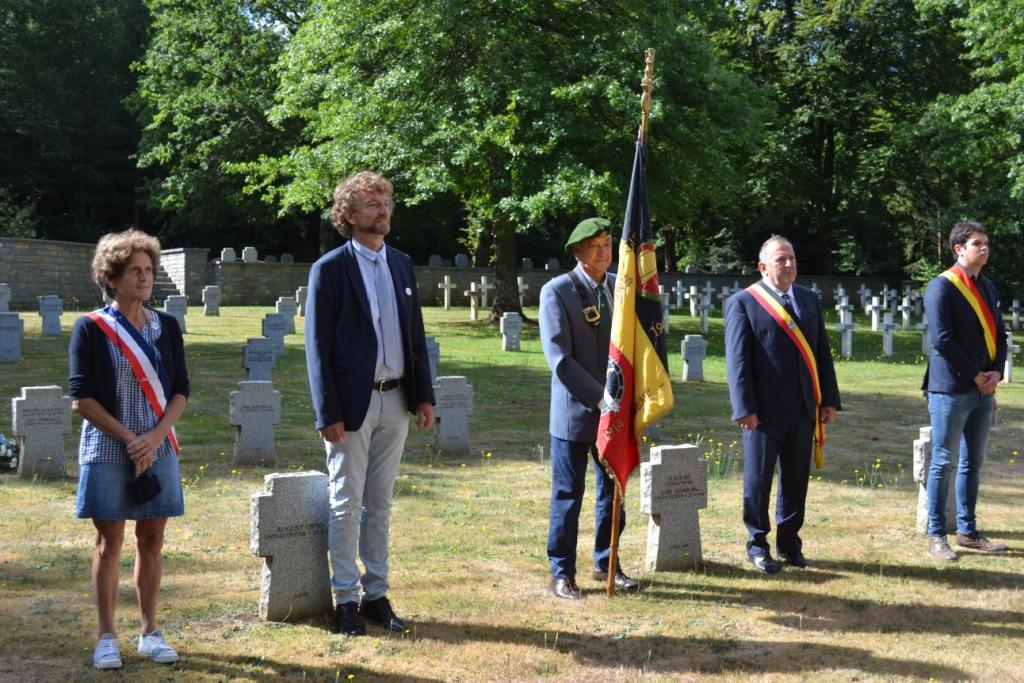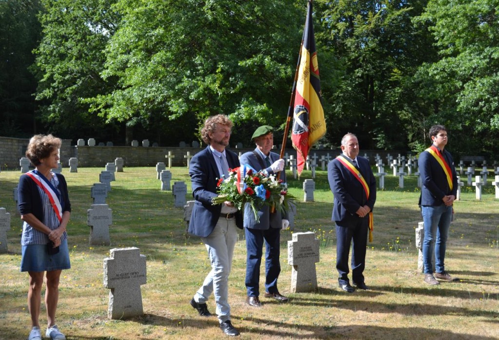 Malgré le caractère très intimiste de la démarche, initiée très tardivement en raison de l’évolution des contraintes réglementaires, les responsables locaux de la commune de Tintigny ont tenu à être présents. Benoît Piedboeuf, bourgmestre député fédéral et Benjamin Destree, échevin en charge des commémorations, ont participé à la cérémonie. René Bastin, responsable, sur place, du Souvenir Français, et historien local, a assuré l’organisation de ces brèves mais émouvantes cérémonies en présence d’un porte-drapeau de la commune, mais…sans public.