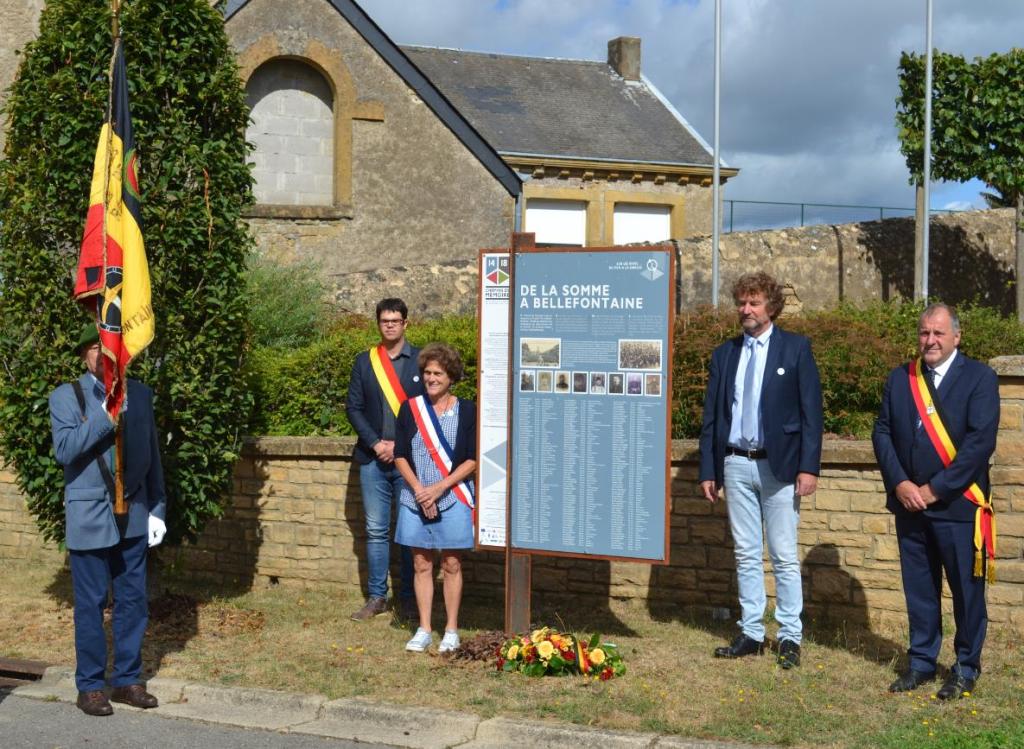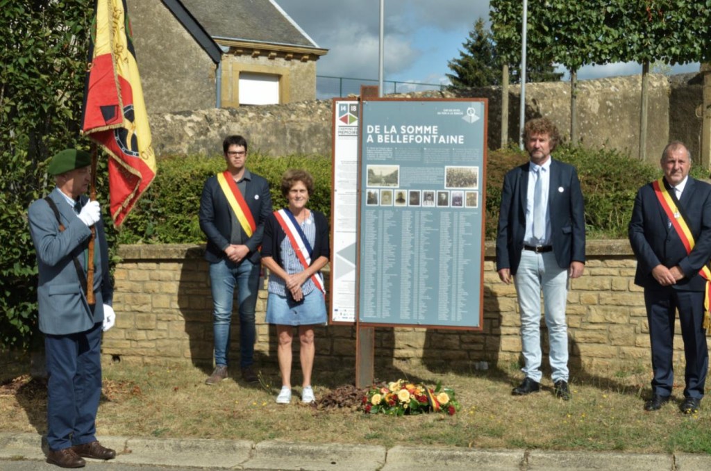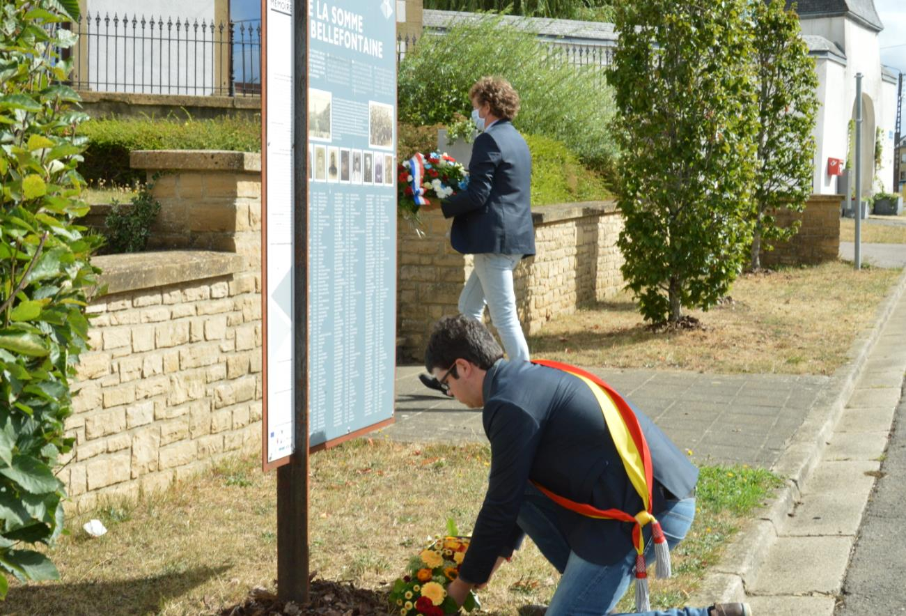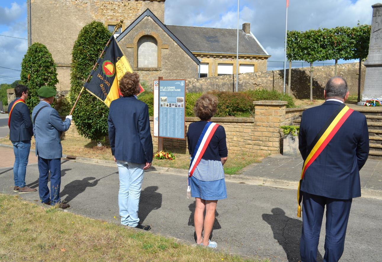 Au centre du village de Bellefontaine, un dépôt croisé de gerbes a été effectué. L’association française a déposé ses fleurs au pied du monument aux morts du village, alors que les autorités belges ont déposé les leurs au panneau mémorial « De la Somme à Bellefontaine », signe fort d’amitié entre les deux délégations. Tous se sont quittés avec la promesse, si le contexte sanitaire le permet, d’organiser le 22 août 2021, une cérémonie de beaucoup plus grande ampleur avec la présence d un large public français et belge.