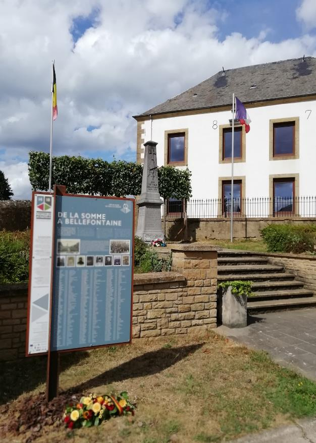 Quelques photos supplémentaires de la cérémonie, en comité très restreint, devant le panneau-mémorial « De la Somme à Bellefontaine » et le monument aux morts du village de Bellefontaine: