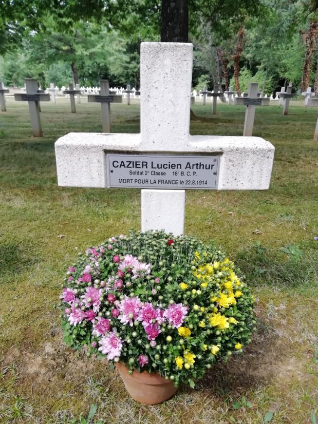 Le samedi 22 août 2020, un dépôt de gerbe a été effectué, en comité très restreint, par le président de l’association au cimetière franco-allemand de Bellefontaine. Michèle Stocklin, membre de l’association, représentant la commune de Daours, a déposé des fleurs sur la tombe de Lucien Cazier, jeune homme originaire du village, mort à 22 ans.